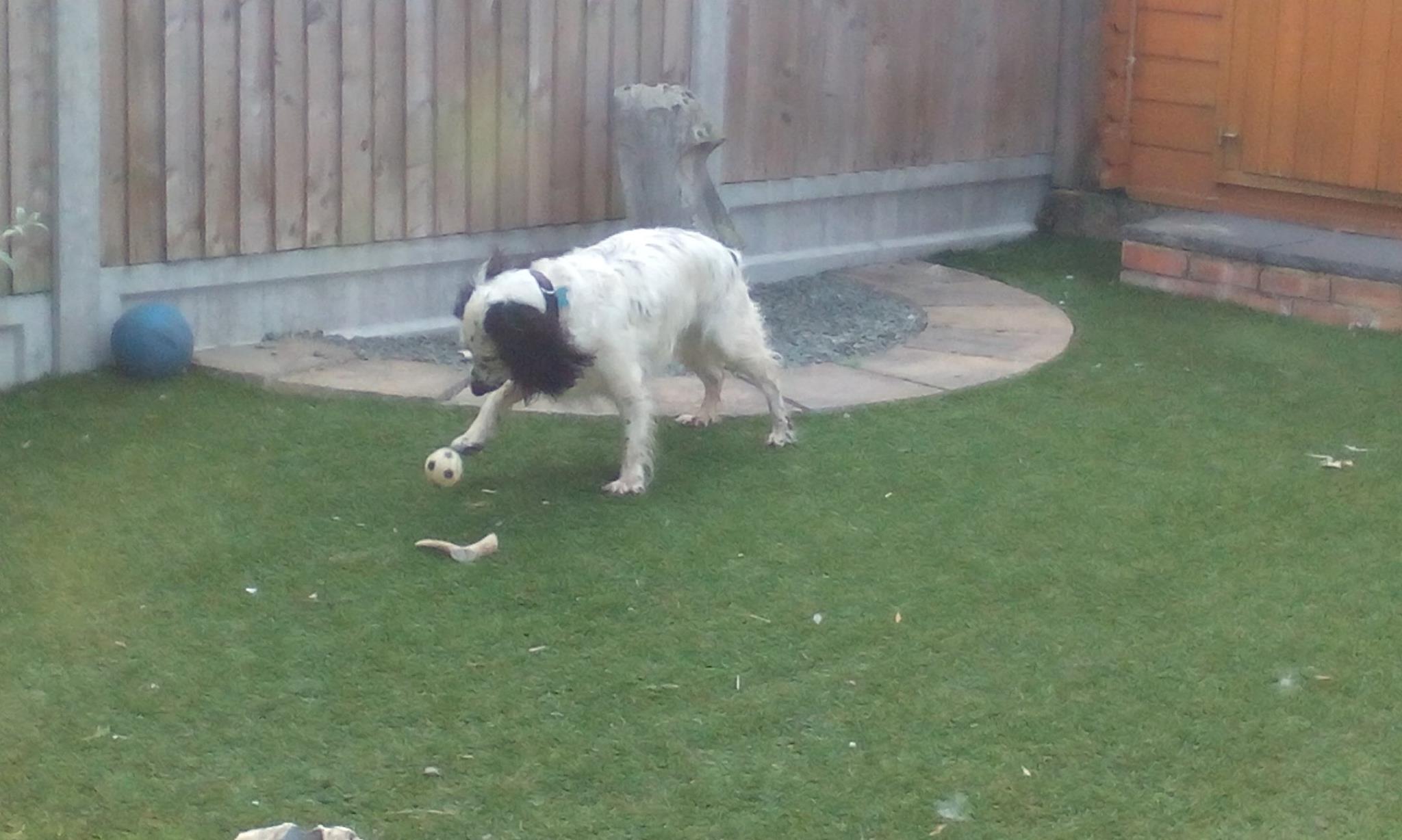 Also dis week Hoodad haz got holdz of some special bouncy hand frow balls and has been using dem on out night walkz. Dey not go as far as da onez frown wiv da sexy black but it iz good fun, but boy does it makez me puffed out. Pic 1 is me puffed out on da sexy black ball frow dis morning.