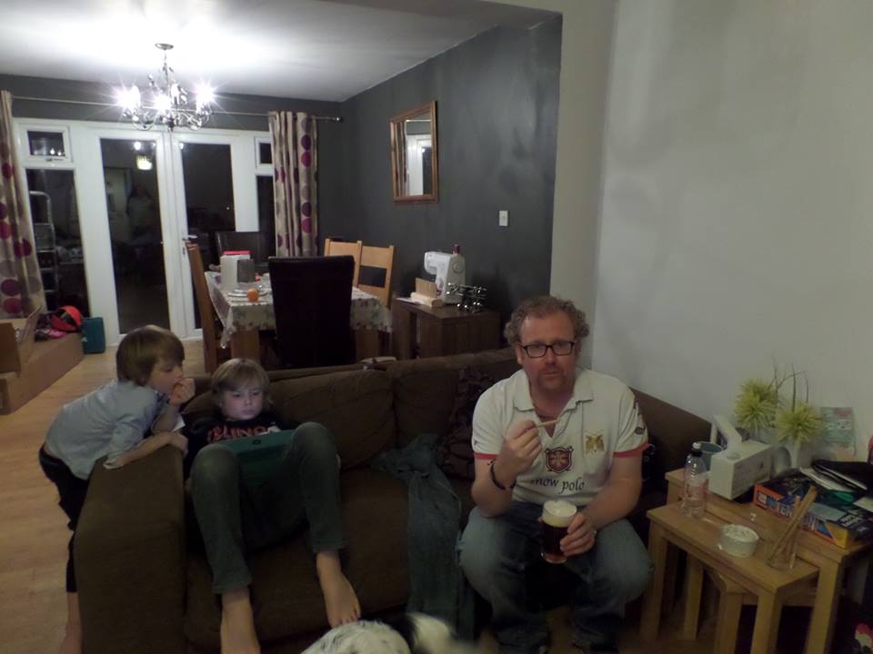 Pic two is Hoodad and Me wivz HooAuntie Clare and Roly inda back. We waz wacthing Huge play Rugbyz. Hoodad said he played lots when he waz young, I dontz see it meself dey could all run fast and didnt wobble like he does when he runz, which iz not oftenz I can tells you.