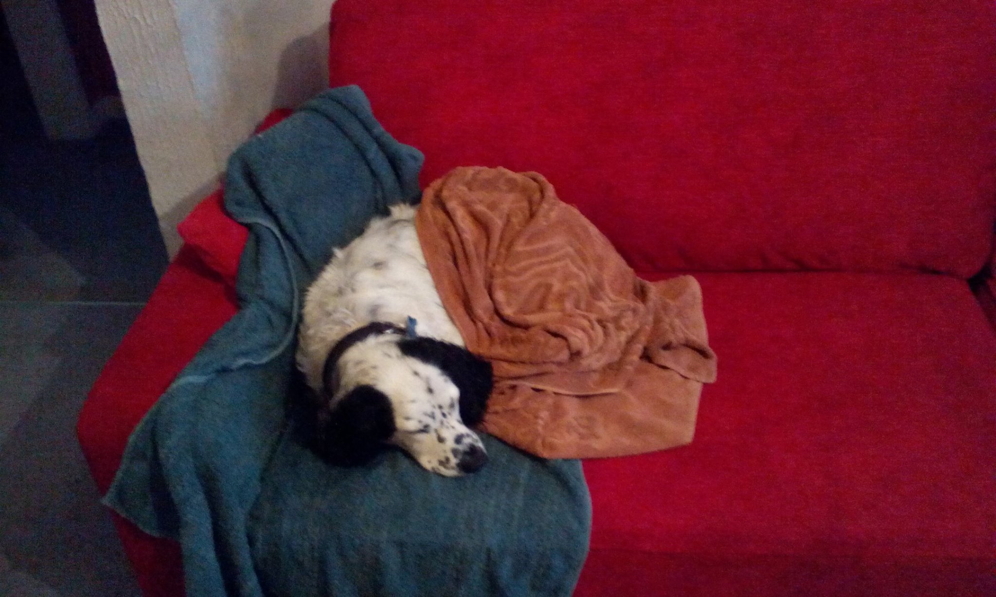 We eased in nicely wiv just one lap, fink Hoodad is sufferin from new years day, he was sober new years eve (a never before seen event according to Hoomum) and dey spent the day changing da covers on da sofas so day could wash da stank out of da old ones, I fink I is gorgeous on da new red covers, see pics 4