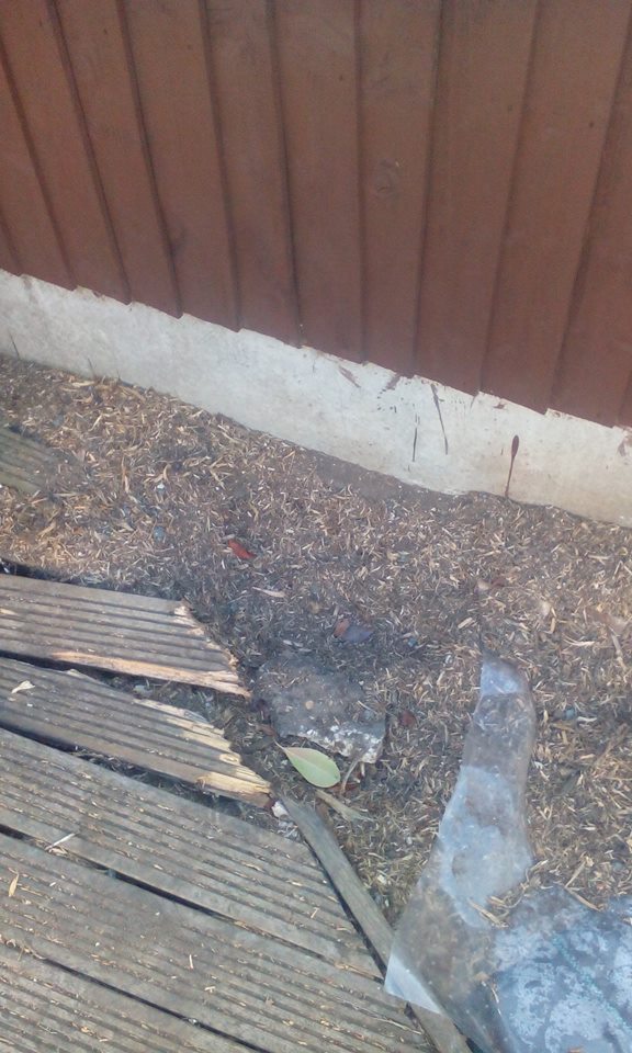Az you knowz da man came and took my pee treez away, I fought I would miss dem loadz. But dey usez a big machine to eatz da roots and it left da ground all soft and covered wiv woodchips. So I can getz well messy an it z all softz and easy to digz. I fink I deserve anuvver holibob so I iz startz da dig to Australia an I goin wiv or wiv out da Hoomins, Pic three is da progress so far, What you fink?