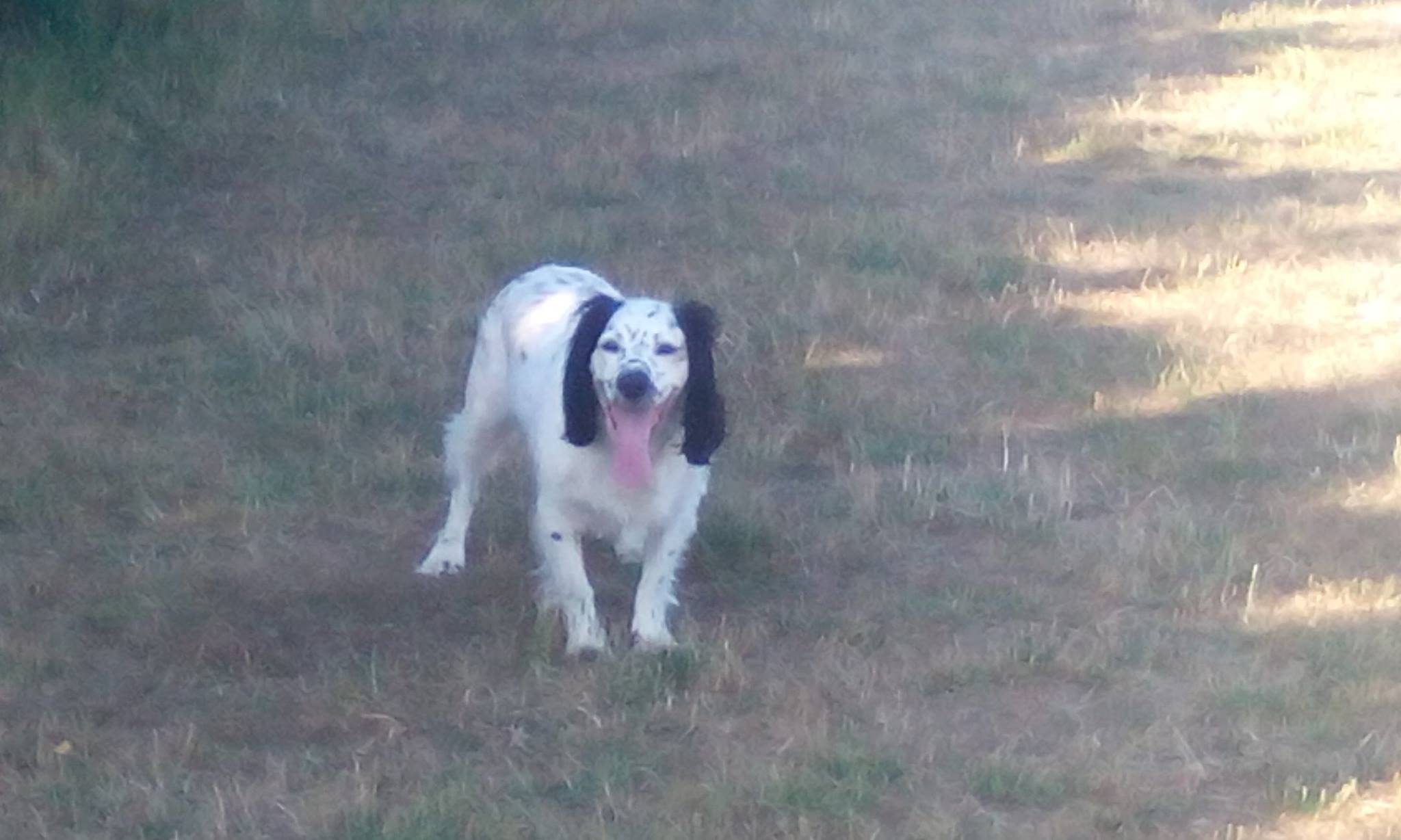 When we getz to da ballfrow at da Crooked Billet he always sayz sit den wait den he takez da figure of hate of me an dis iz my chance so I usually takes off like a Sprocket Rocket. Today justz to freakz him outz I sit and waitz until he empty his poop pouch ( I waz well productivez diz morning on da lead walk bit), takez a drink and only runz when he frow da ball, he waz well confused *GRIN*