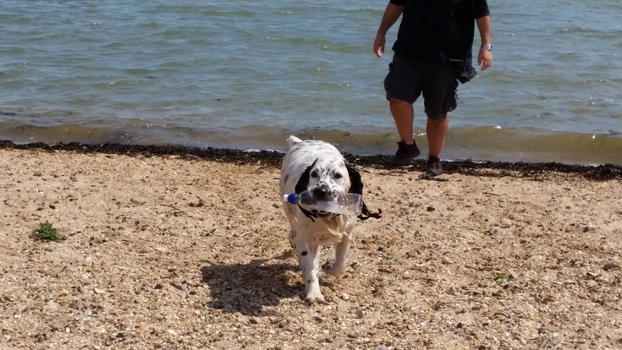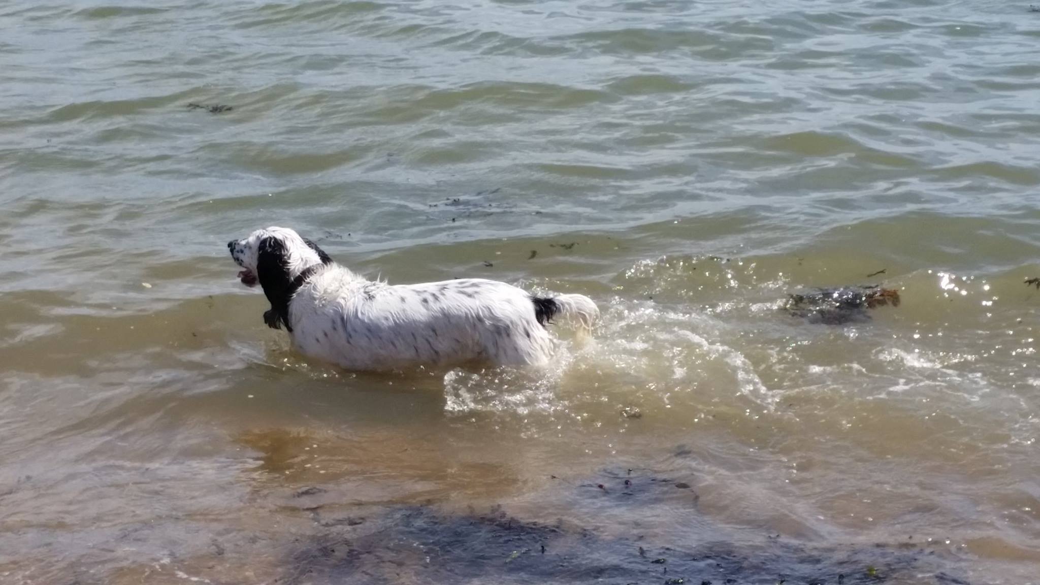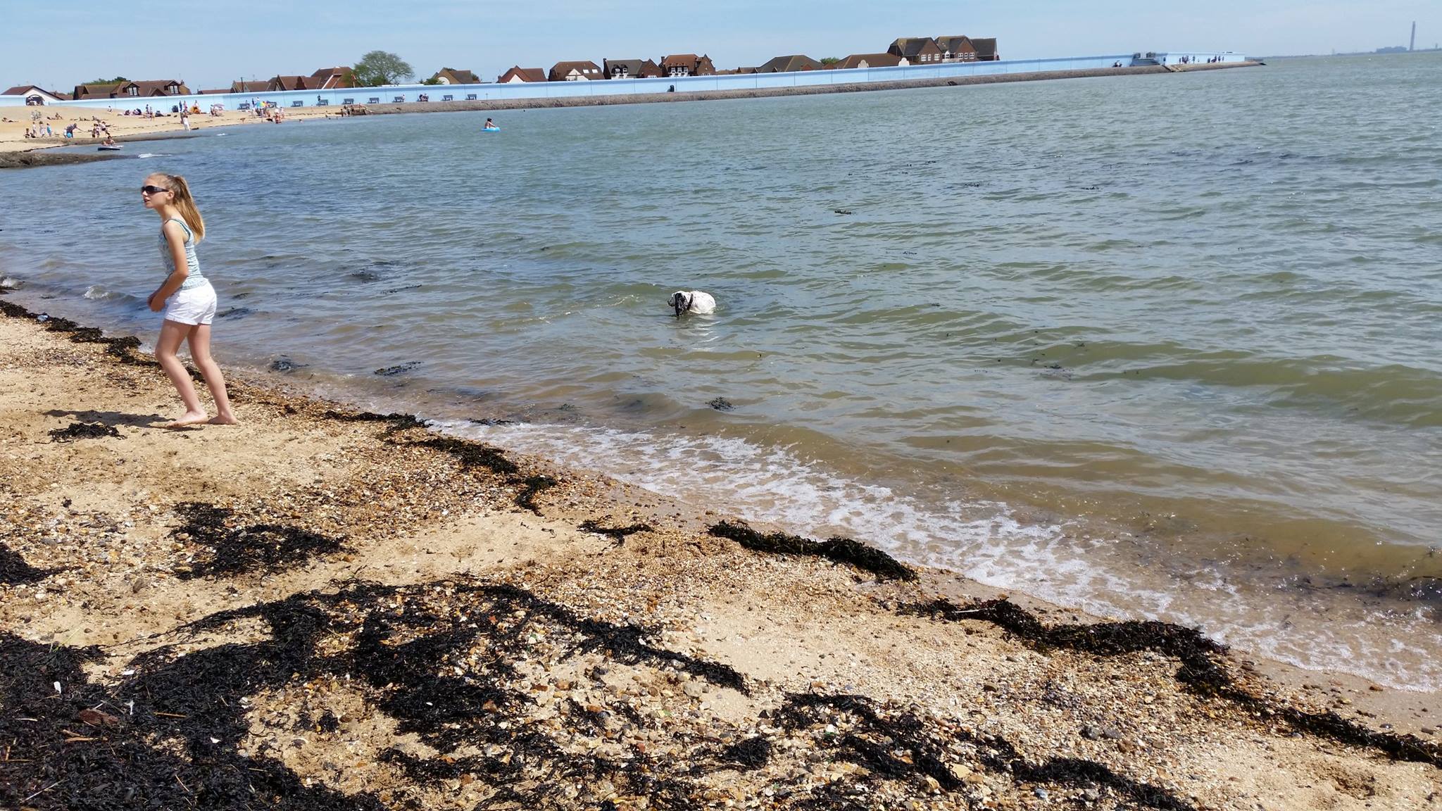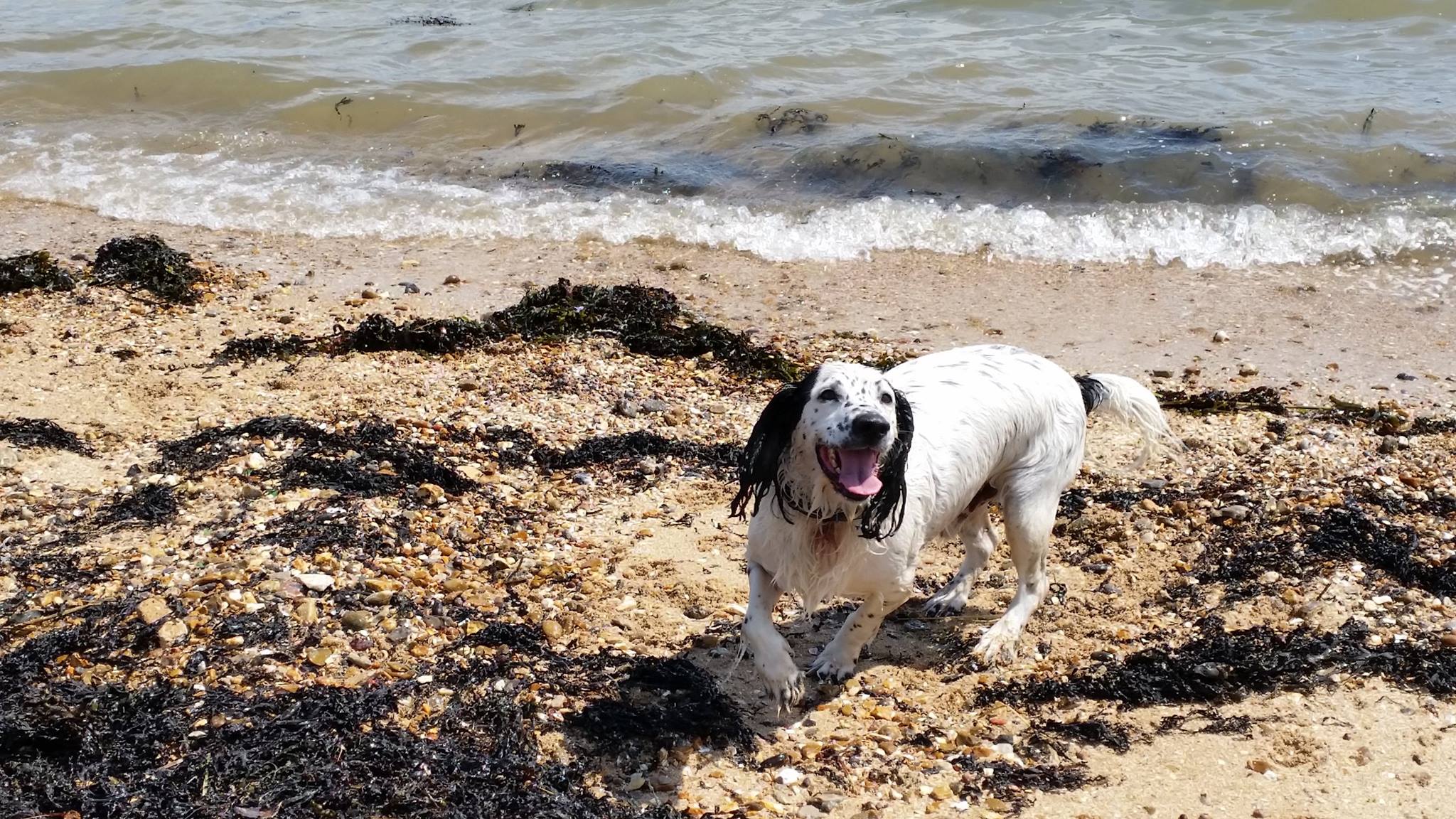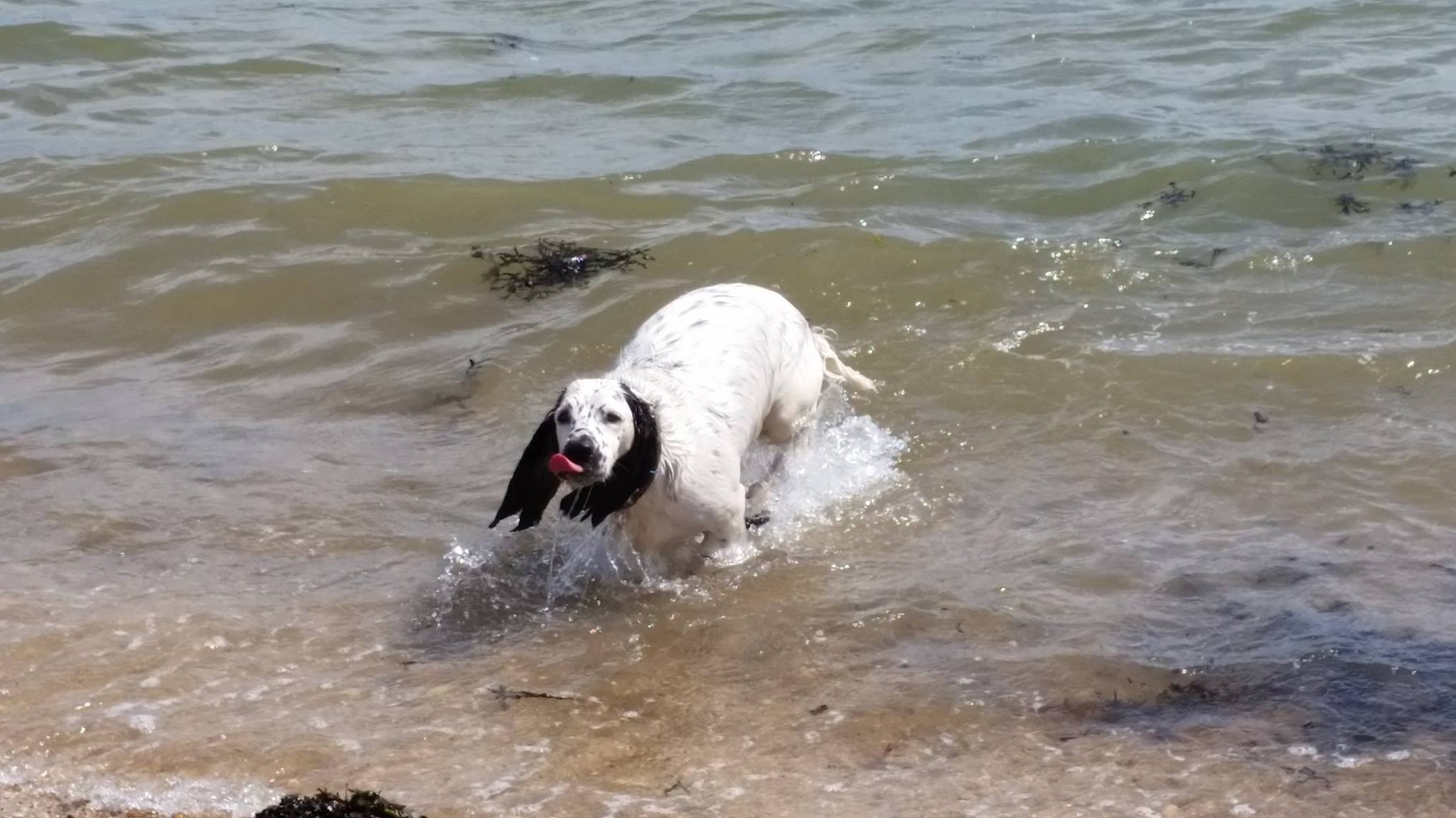 Enough of da Cat more on da Jakey nowz. Last week I gotz a mini holibob wiv da hoominz we wentz to Canvey Island as it haz da dog friendly beach. It waz magic I met lotz of puppiez and showz da people what brill dogz we sprocketz are by swimming and playing in da sea and being well behavez when da hoominz callz me. I even let some children pet me. So lotz of pics of me havesz fun in da sun.