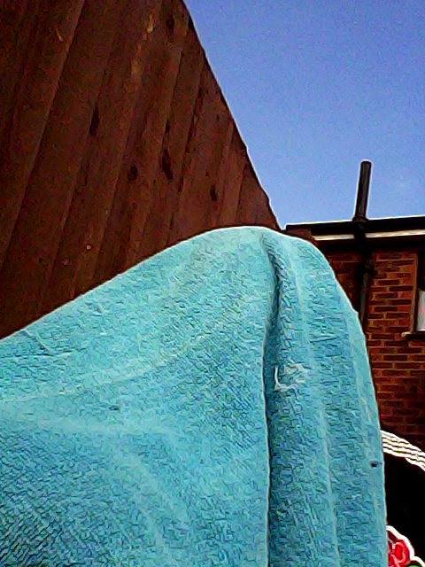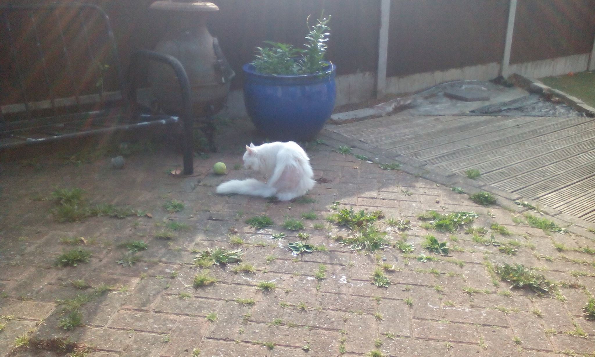 I iz in pain my belly achez from all da laughing I haz been doing. You knowz Baby da cat, well now she iz Baldy da cat. Da Hoominz was worried coz she got da big knotz in her furz and would not letz dem brush or cutz dem out, dey thought it might be a cutz or a bite. So dey take her to da vetz. At first I waz worriez as she not come back wiv Hoomum but later dey getz her I was so happy she waz back. At first I not seez it. Den there it waz (pic 1 and 2) she lookz like a part plucked chickenz. Now I haz da new game where I creepz up behindsz her and stick my cold wet nose on her skin, it make her jumpz well highz. Pic 3 iz me an Hoodad gigglez and hidez under towel so she not go all Freddie Kruger on uz.