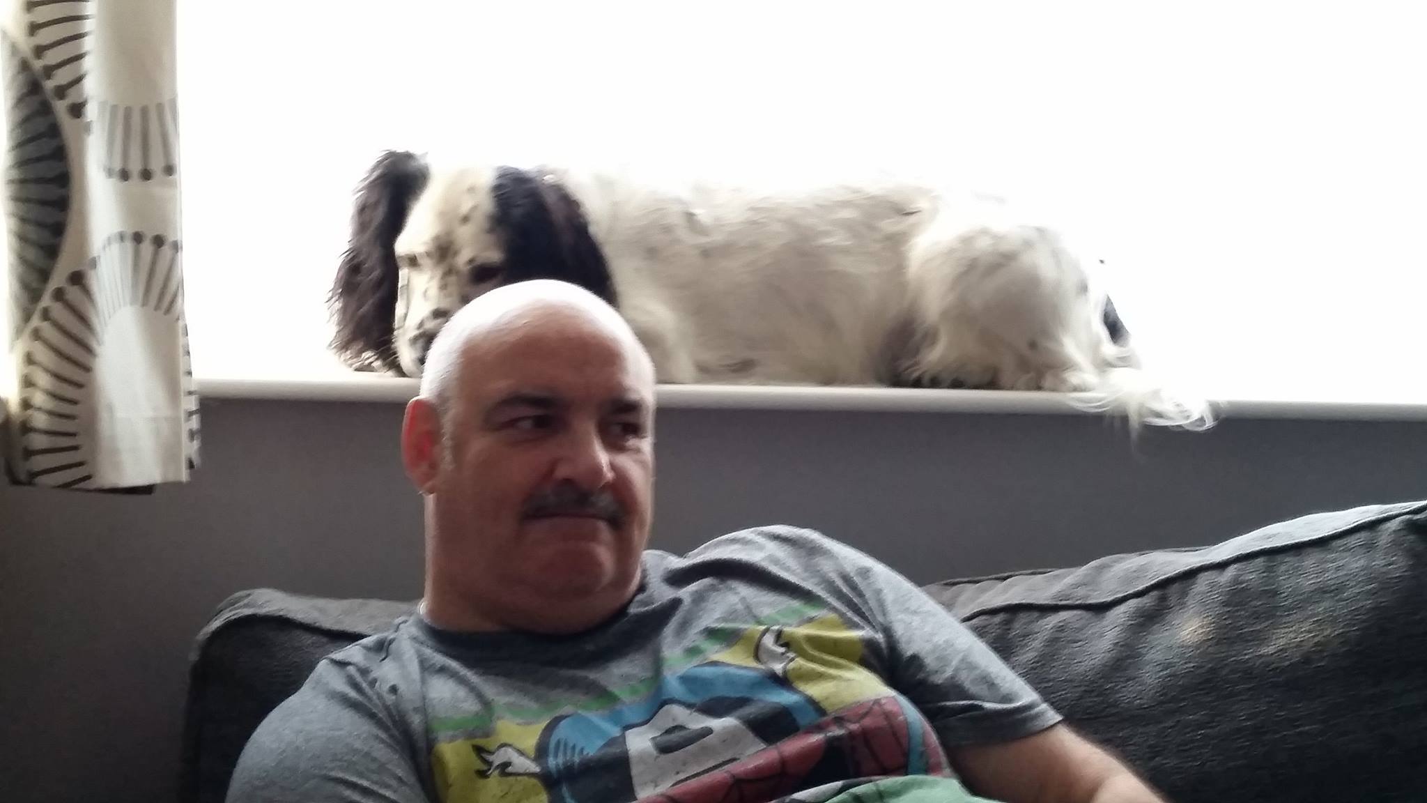 Da Hoodad got home through da nasty Dartford Tunnel in record time for a Friday so I was well happy to see himz earlies. Pic 1 iz me givesz him da big cuddlez and pic 2 iz me try to hidez behind hiz giant head, I can still seez me so perhaps it not so gigantic as Hoomum makez out.