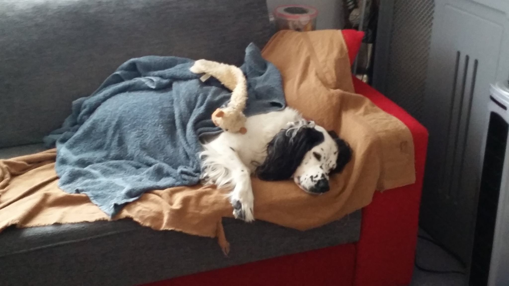 So Pic one iz how I spent most of da week at home. Dat iz when Hoodad was not yomping me earliez down da Manorway or ballfrow evening walks. He was only away one night diz week so by Friday I waz right puffed out.