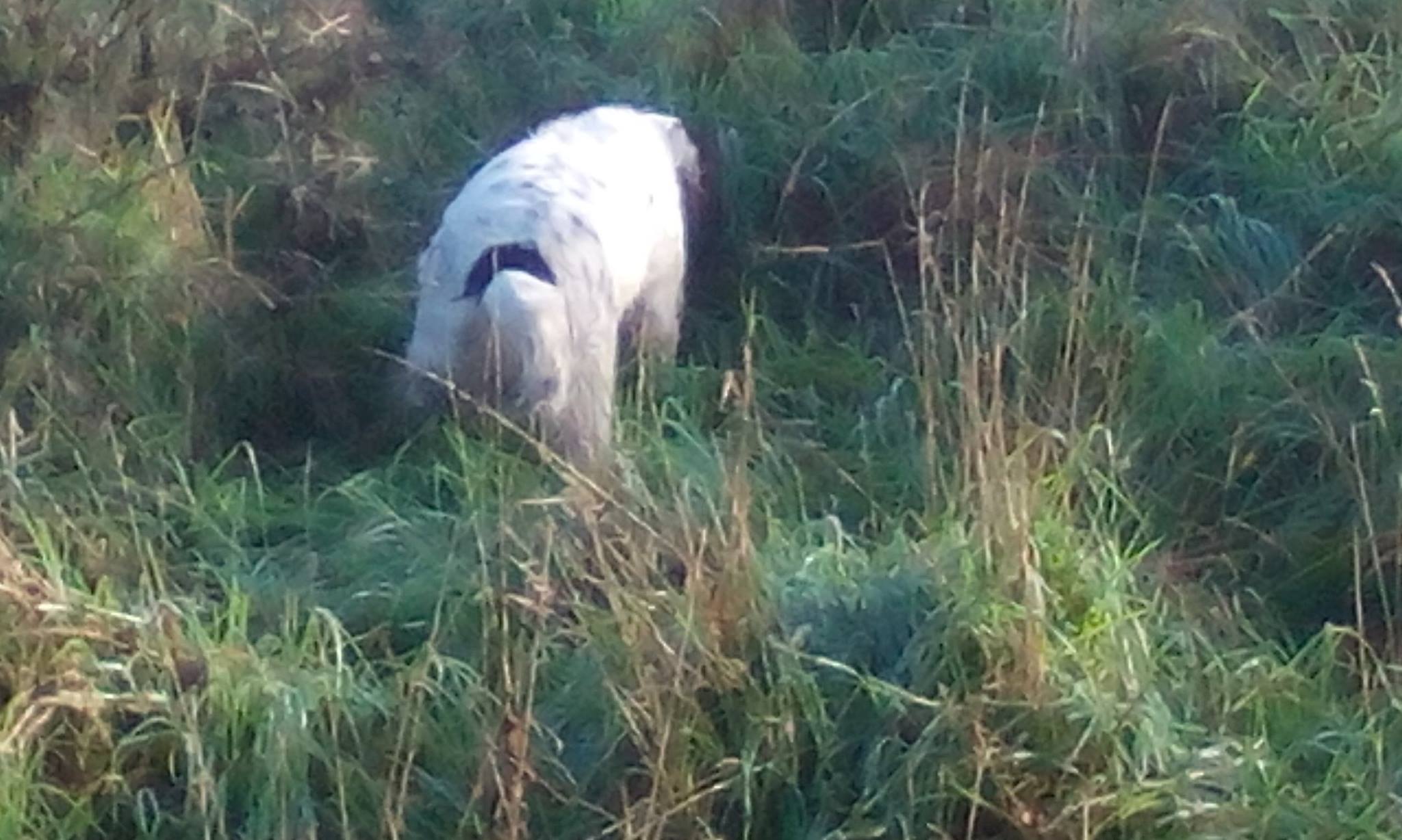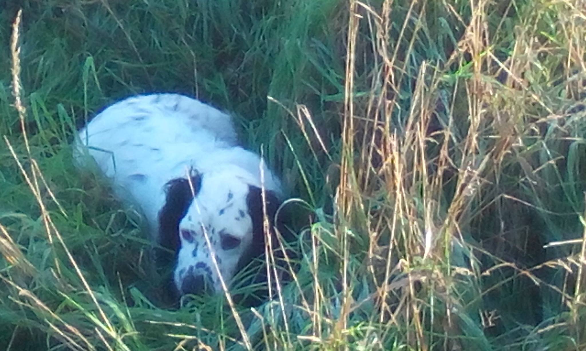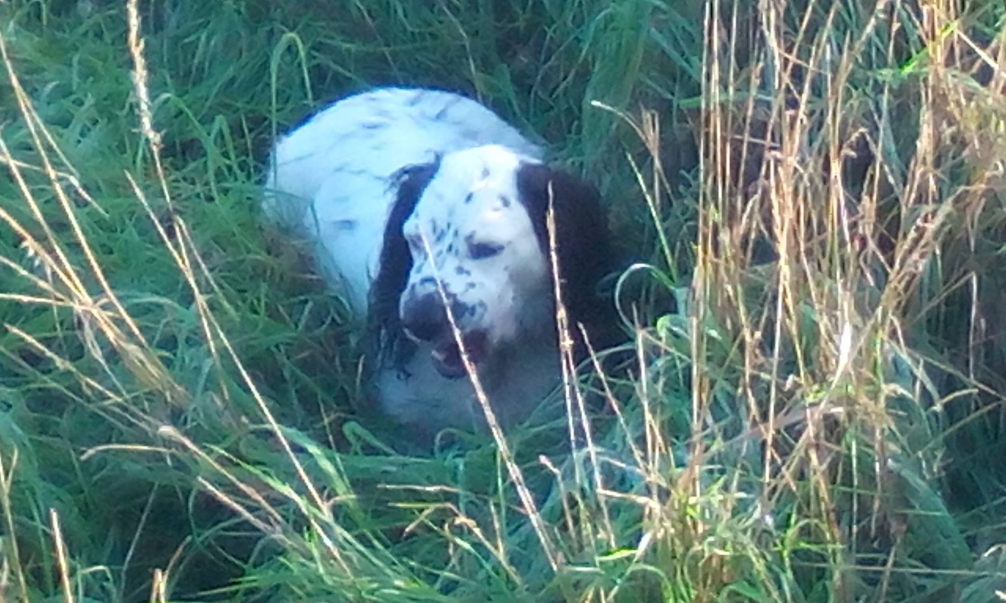 Sadly try as I mightz it too wet to get really dirty and da muddy puddle was makez my bitz tingley again so I not stop in too long. The pics of me in da long grass waz coz I found a Scooby snack and Hoodad tries to see what it waz but I scoffz too quick. It haz da bonus of gettz me a bit more Stanky which was lush.