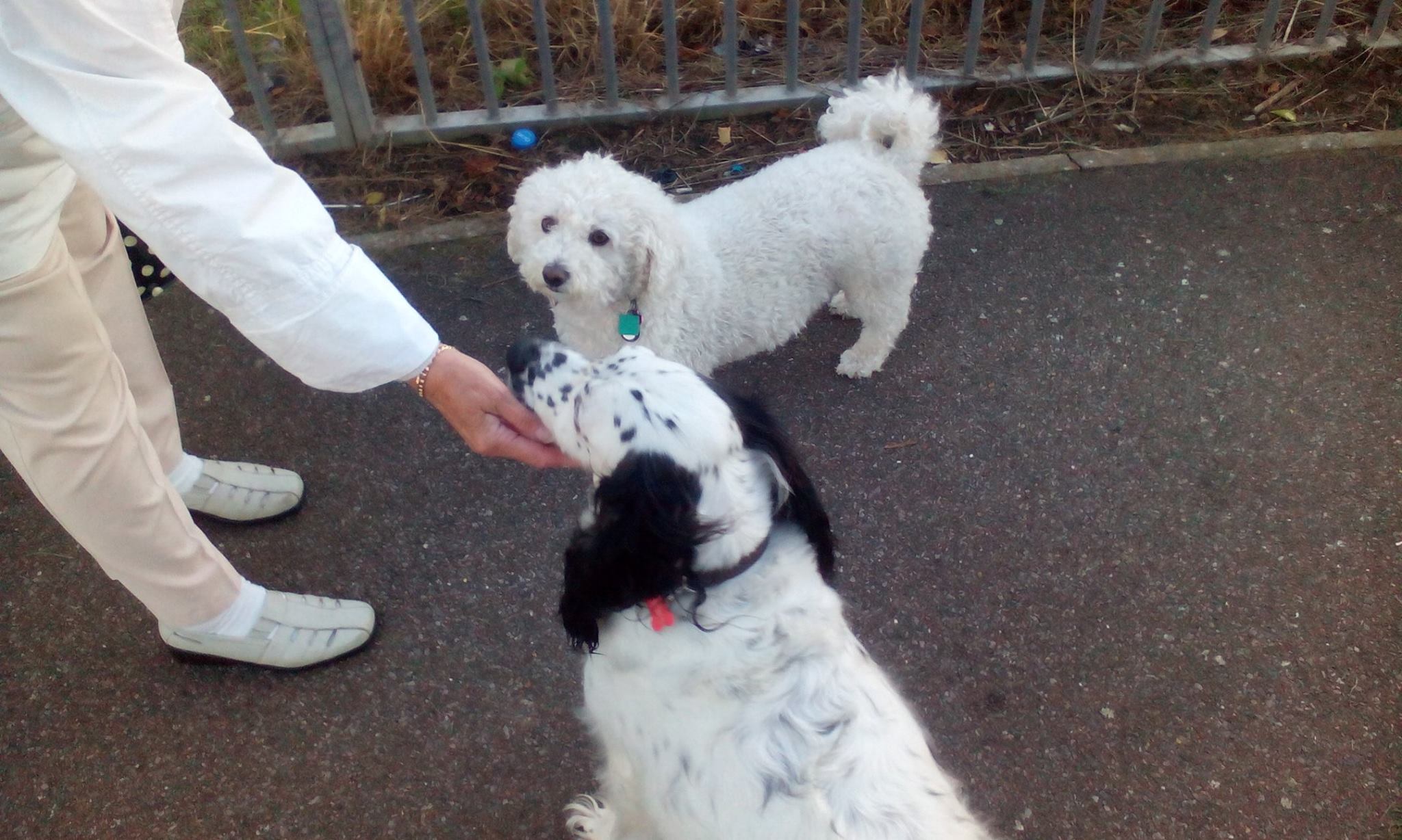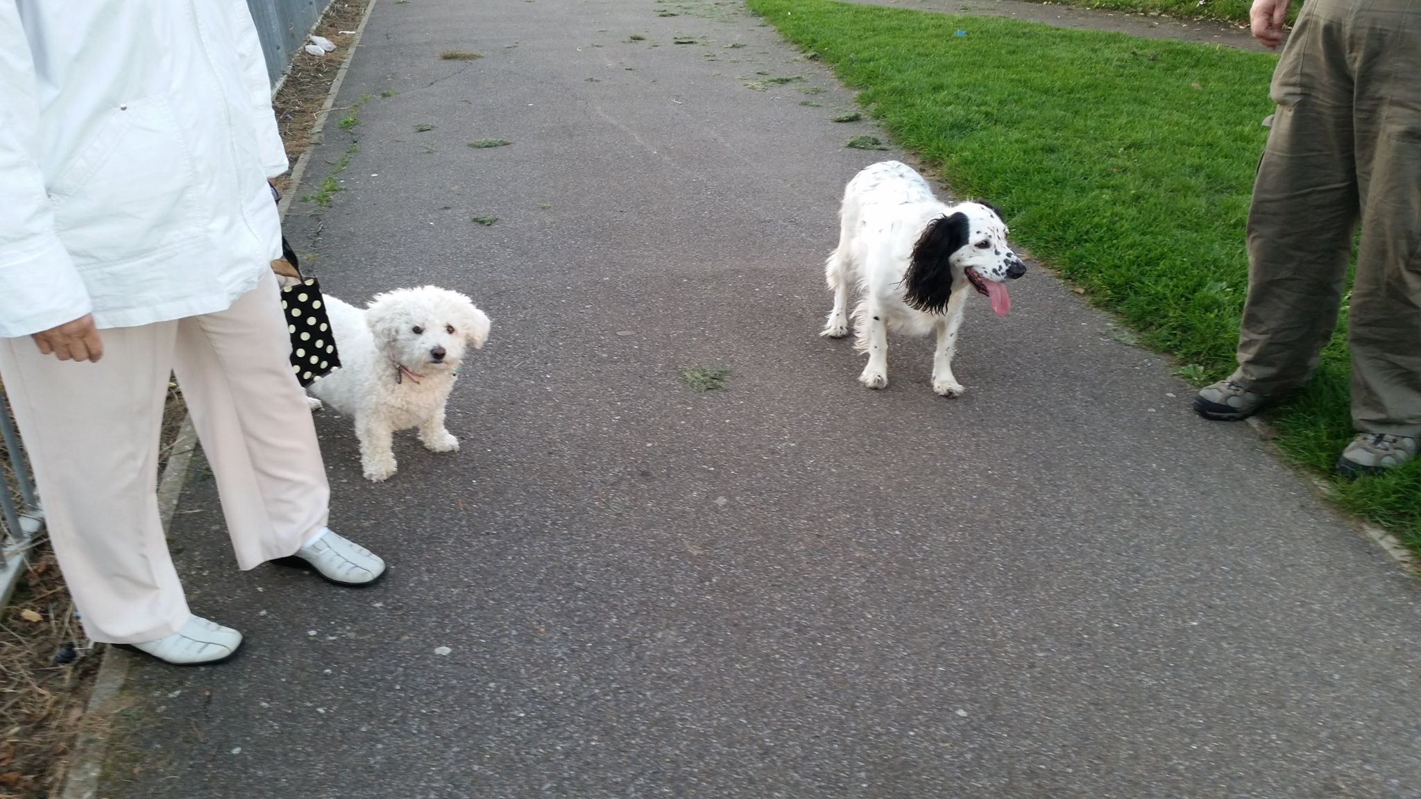 Pic 1 and 2 iz me wiv my friend Peggy and her Hoomum, Hooauntie Joan. It da first time we have been close enough to get a picture. Peggy iz a well pretty puppy don’t you fink?