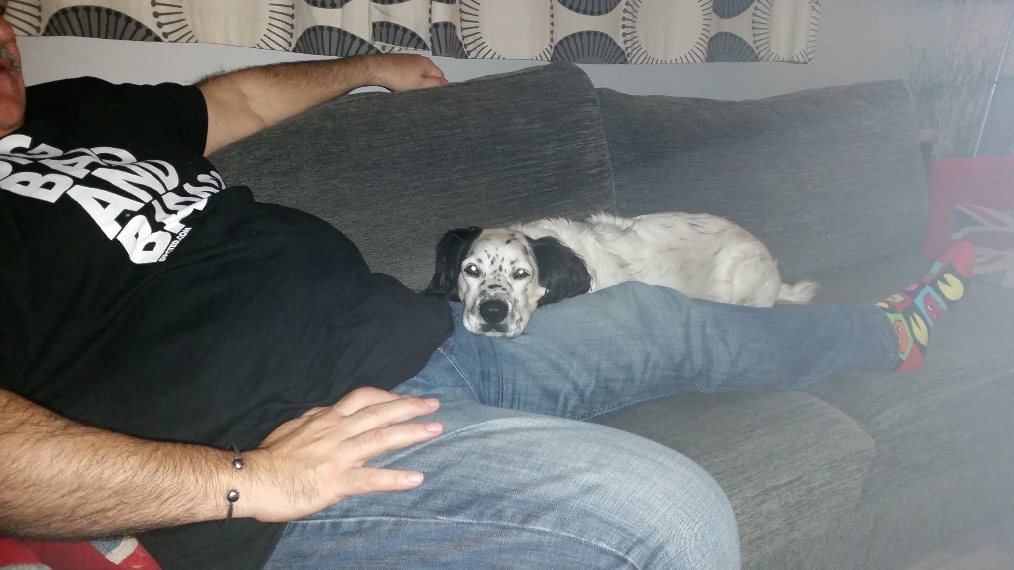 I haz been allowed out in me garden again which waz nice but on Friday da fence felled down coz da builderz not fix it up dey just leaned it on da post so poor Hoodad getz home from da busy week at work an haz to fix da fence so I can go in da garden again, he luvz me loadz so I give him snugglesz while he watch da rugby, thatz what da other pics are. Az a special reward I left loadz of prezziez for him in da garden.