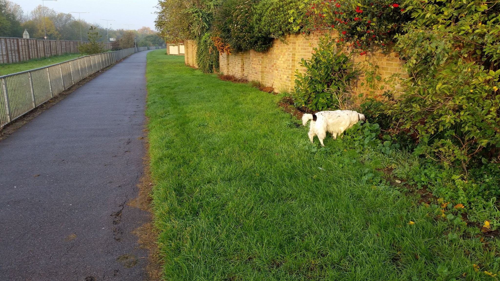 I iz only giving you a quick update coz I iz proud of myselfz I almost tipped a Rottweiler over diz morning when I waz out walking. Dere waz no ball frow but I didz getz to run and do sniffing and getz wet from all da dew on da grass.