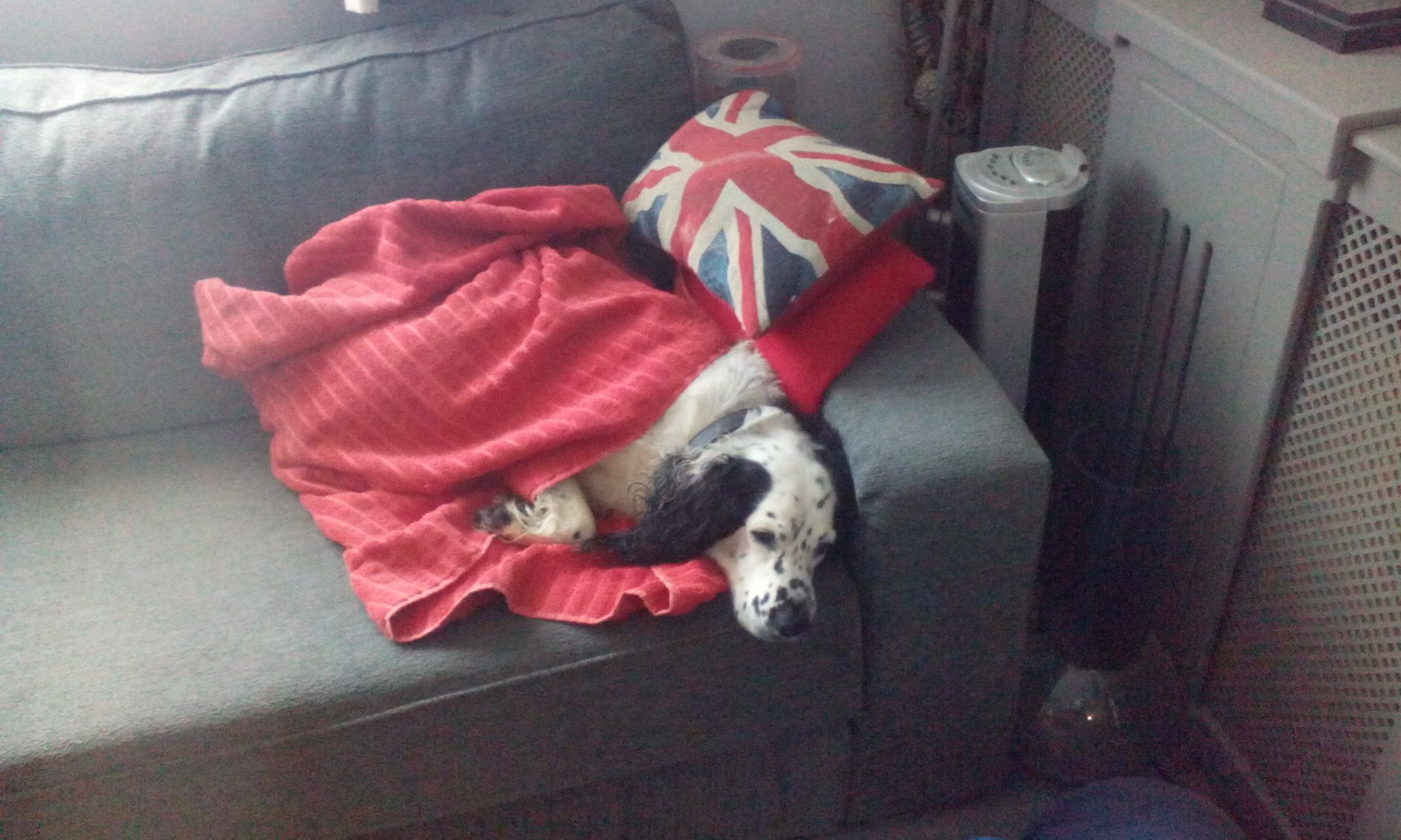 Muddy puddle waz well cold an make me undercarriage all tingley. I not sure I like it so had two goes but still undecided. Todays Piccie iz me haz rest on ballfrow coz I waz puffed outz. I waz so wet I gotz da two towel job I LUVZ MY TOWEL. (Hoodad here I have sneaked an extra pic to show you what happens after ballfrow for most of the day.)