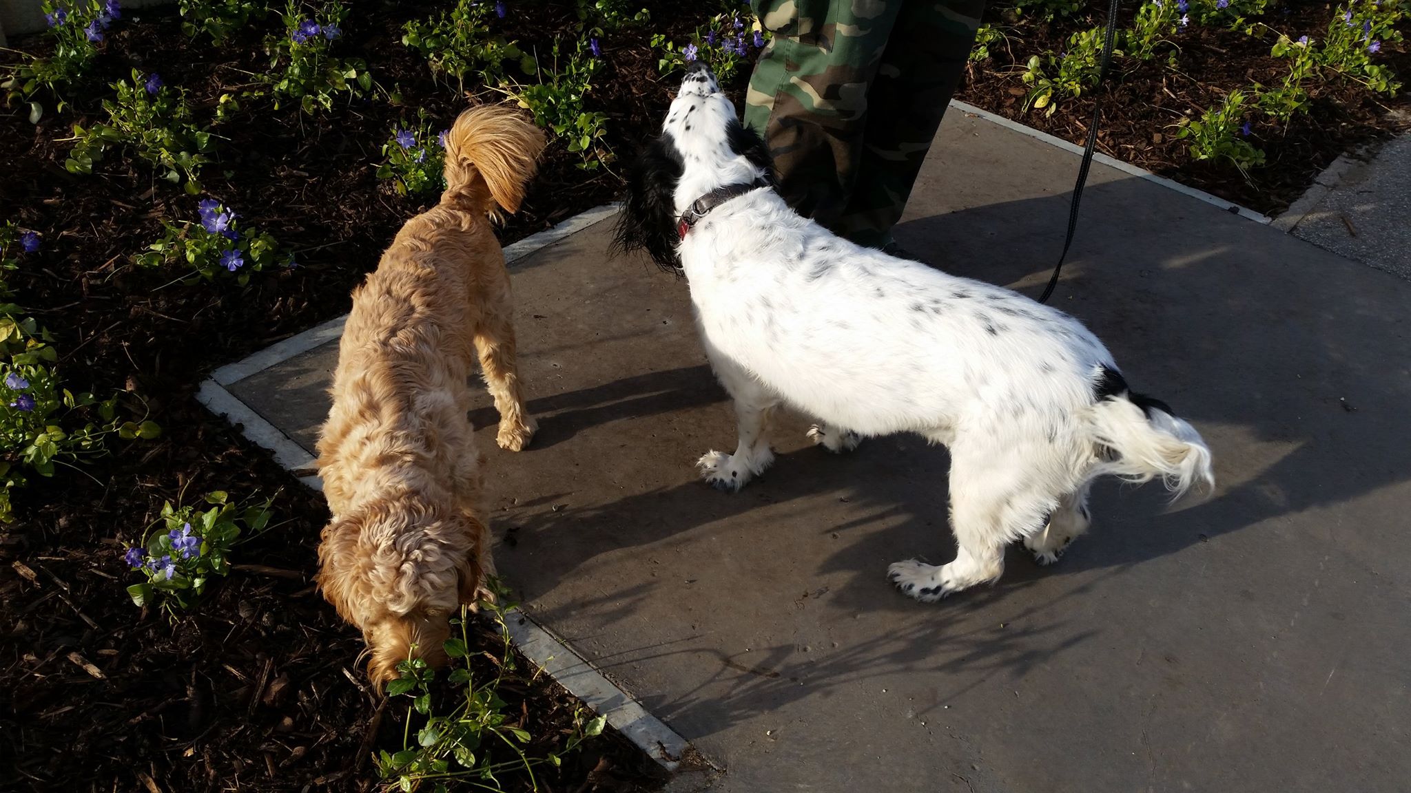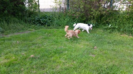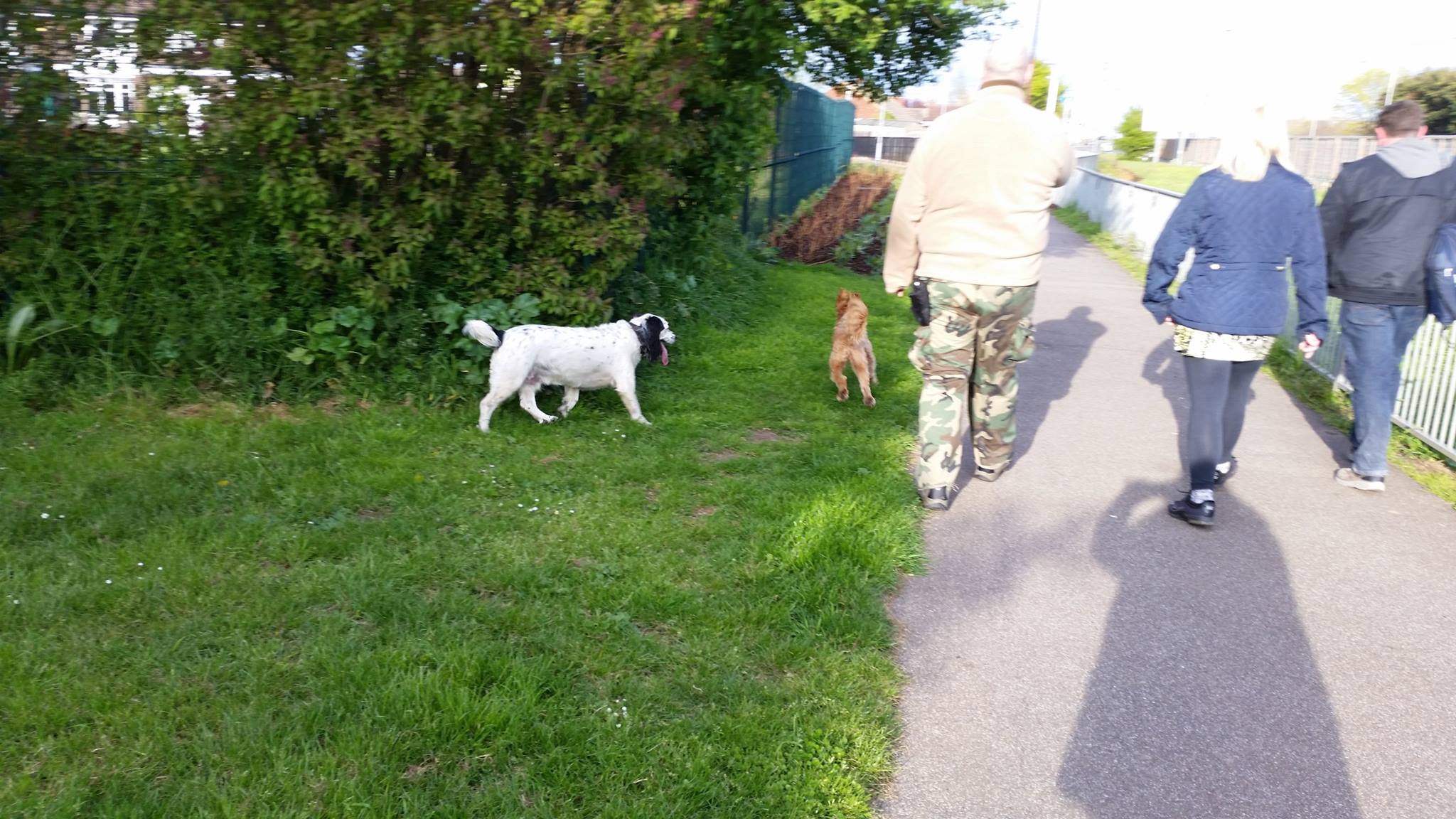 Hoodad waz do da ground shakey huffy puffy leaky fing again (Hoodad here Running Jake Running). I fink I could be a detective in da Sprocker police coz I figured somefink out. Either he iz use me as a training aid coz when I waz runz an zoomiez wiv da ball he walkz an when I stopz an rest he runz, I test diz and it waz same regardless of how far or long I ran for, or an diz can’t be right, he iz runz to stop me getz rest an getme fitter ( Hoodad here bit of both if I am honest. Anywho he talkz to a pretty girlie great dane puppy when he should be ballfrow so I punish him by runz off full turbo mode, earziez back, bum down everyfing, I went well far den liez down. Well by da time he got dere it waz like da flying scotsman steam engine pulling into a station all huffing puffing an steam leaking fluid all over da place.