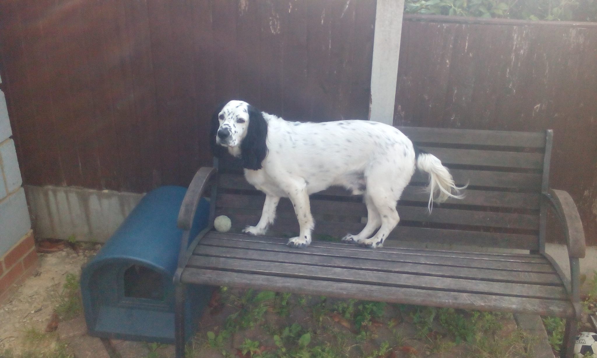 Hoodad az always spoilz me fun an keepz me cooped in da house wiv lead walks in me own garden, dat iz not fair it must be a crime. Tuesday I goez to work an comez back an da fence iz finished so no freedom breakz now, but at least I iz not on da lead in me own garden.