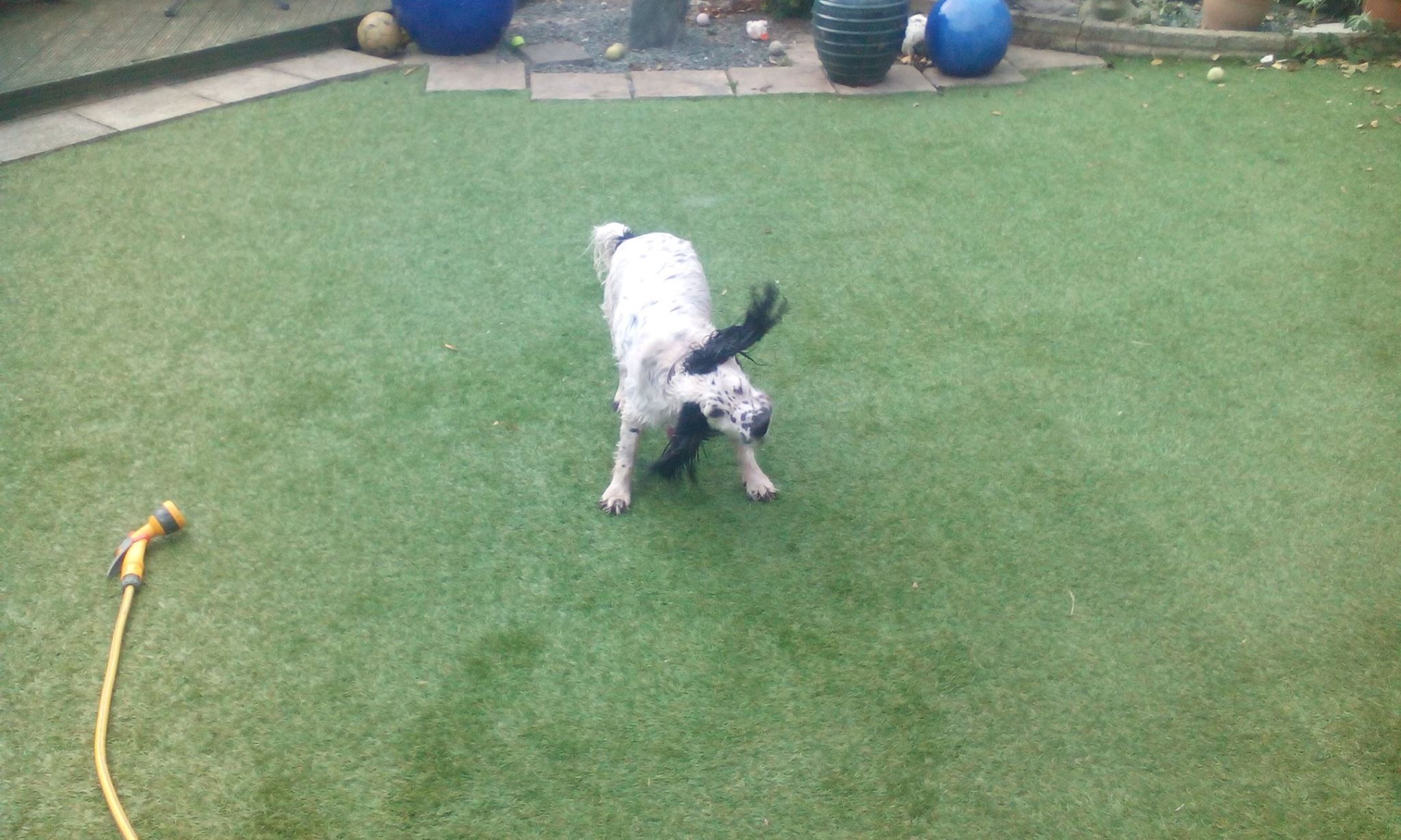 Da bad news waz Fatman hosepiped me wiv cold water picz 4,5 and 6 iz me recoverz in da garden from da freezey water.